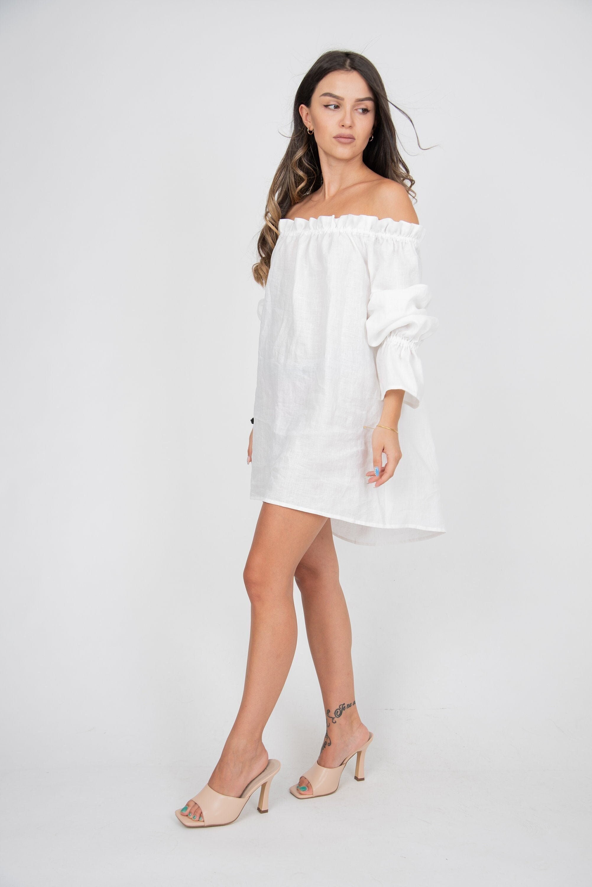 Off The Shoulder Dress White Etsy De
