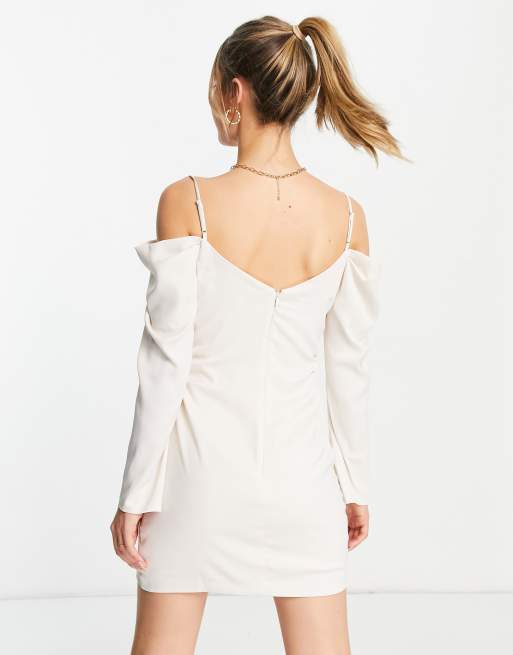 Forever New Cold Shoulder Drape Satin Mini Dress In Winter White Asos